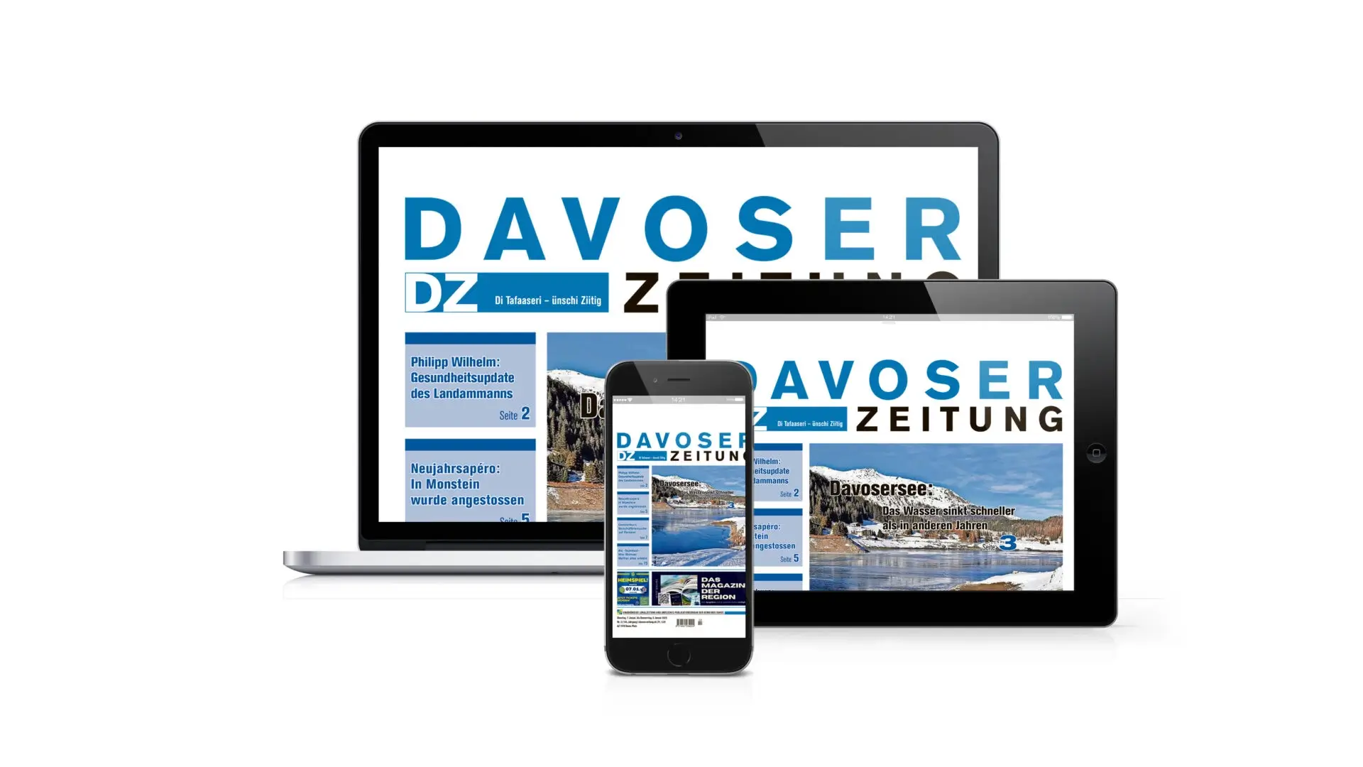 - E-Paper jeden Dienstag und Freitag ab 1:00 Uhr nachtsDie digitale Ausgabe der «Davoser Zeitung» im Originallayout. Online oder als E-Mail ins Postfach.